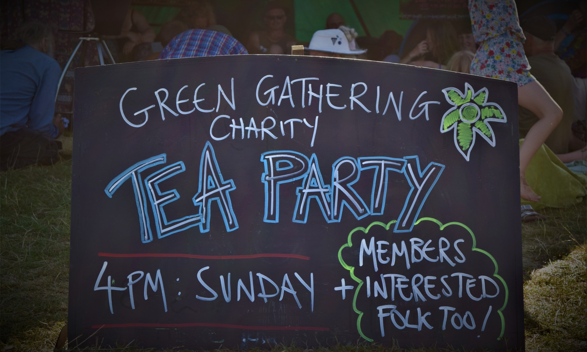 Community members invited to the Charity’s annual Tea Party onsite at the Green Gathering 2019. 4pm Sunday at our onsite home The Greenstage in the Campaigns Field